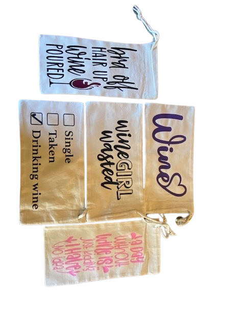 Treat yourself to our 14x13 shopping or gift bags made of 100% polyester! And, for wine lovers, we've got you covered with our 6.25x13 drawstring wine bags, crafted with durable cotton canvas and designed to fit your favorite 750ml bottle of vino. Plus, we offer customizations to make these bags even more special!